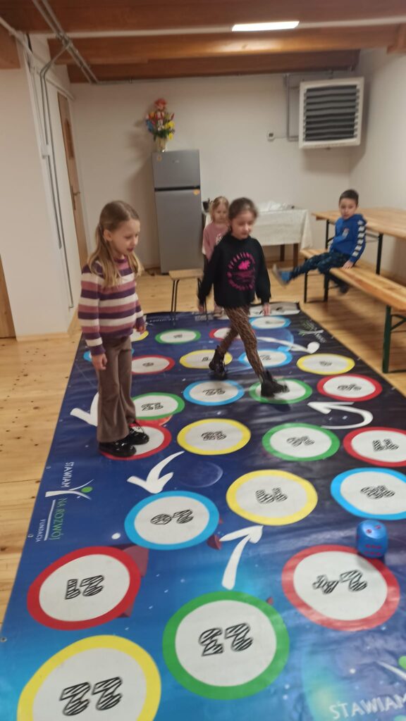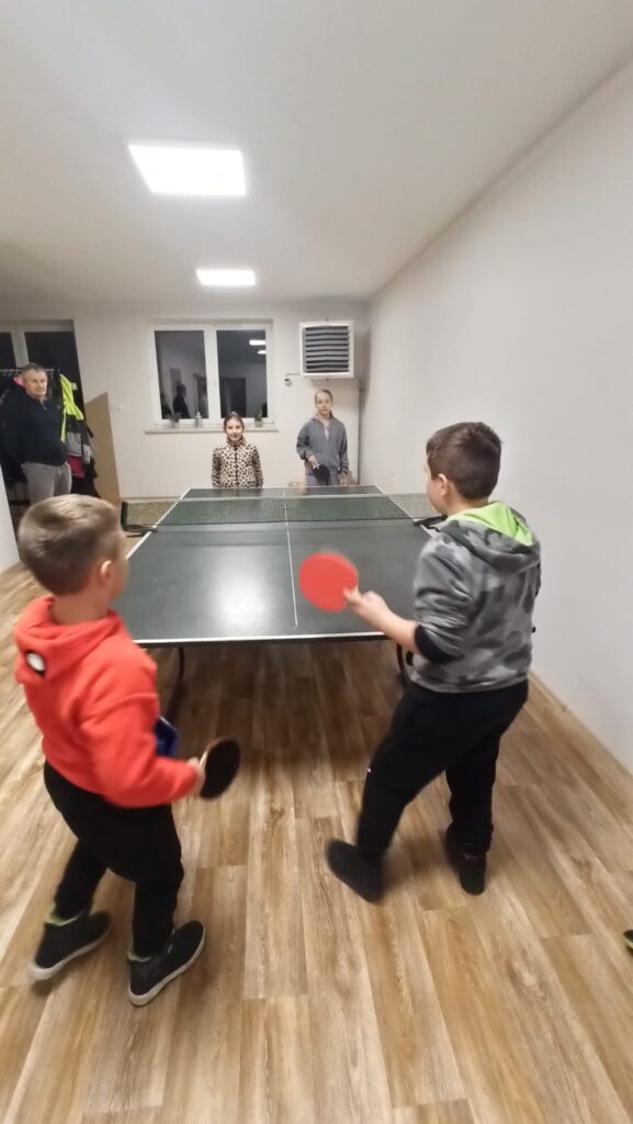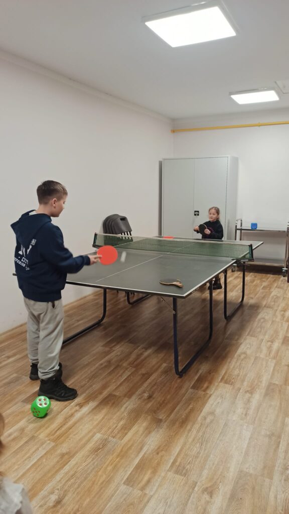 Dużym powodzeniem cieszyły się również gry integracyjne – zarówno rozgrywki w ping-ponga, jak i planszówki w wersji XXL, które dostarczyły wielu emocji i zdrowej rywalizacji.