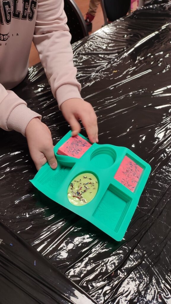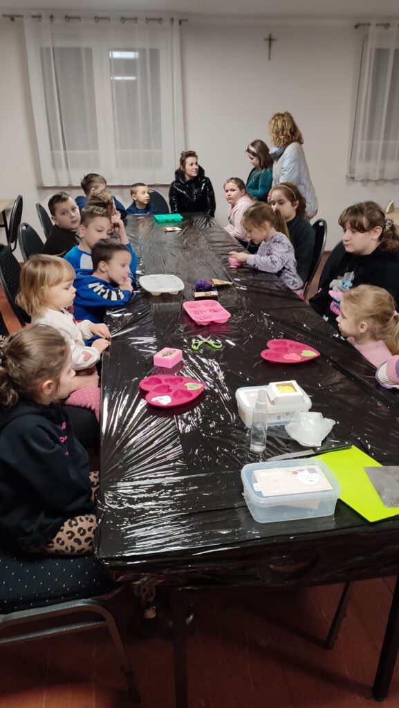 Ferie to nie tylko smakowite przysmaki, ale także rozwijanie zdolności manualnych i artystycznych. Podczas warsztatów kreatywnych uczestnicy wykonywali glicerynowe mydełka oraz malowali pudełka prezentowe, wykazując się pomysłowością i dużą starannością.