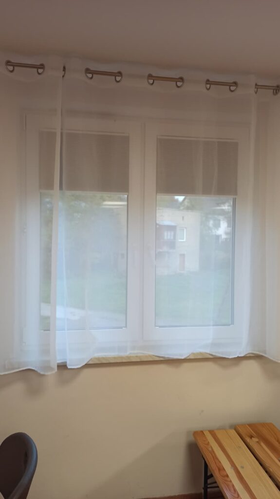 Zakupiono i zamontowano cztery nowe rolety w głównej sali, a także nawiewnik do wentylacji powietrza w oknie na holu.