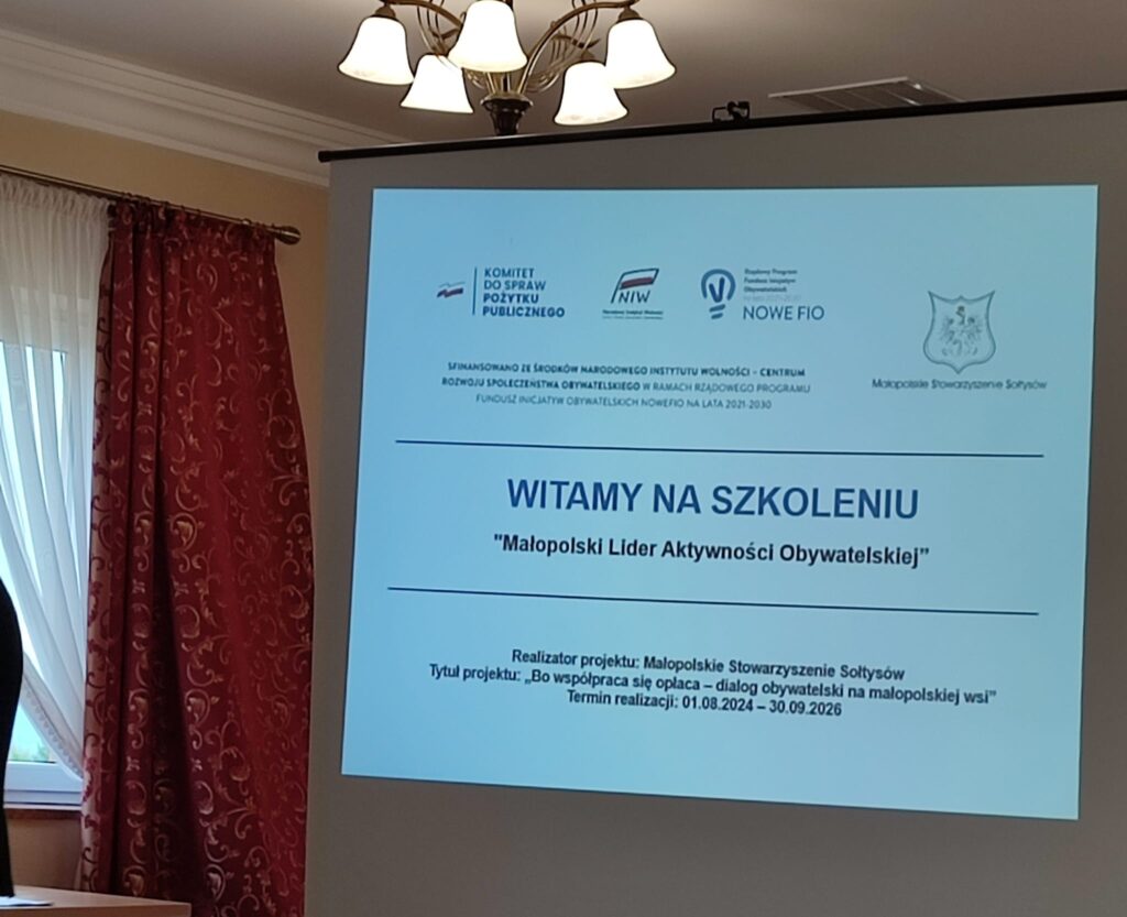 Szkolenie stanowi część cyklu realizowanego w ramach projektu „Bo współpraca się opłaca – dialog obywatelski na małopolskiej wsi”, prowadzonego przez Małopolskie Stowarzyszenie Sołtysów, do którego należy także sołtys Tomasz Dudek.